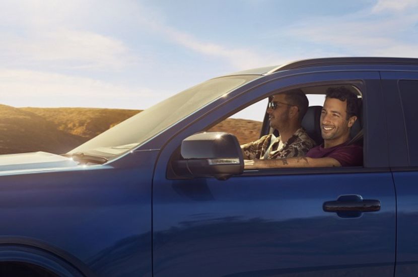 F1 driver Daniel Ricciardo and friend Blake buckle up for their Coral Coast adventure. Image credit: Tourism WA…